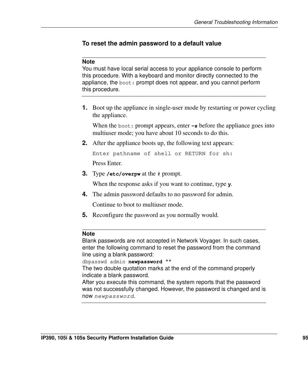 IP390, 105i & 105s Security Platform Installation Guide 95