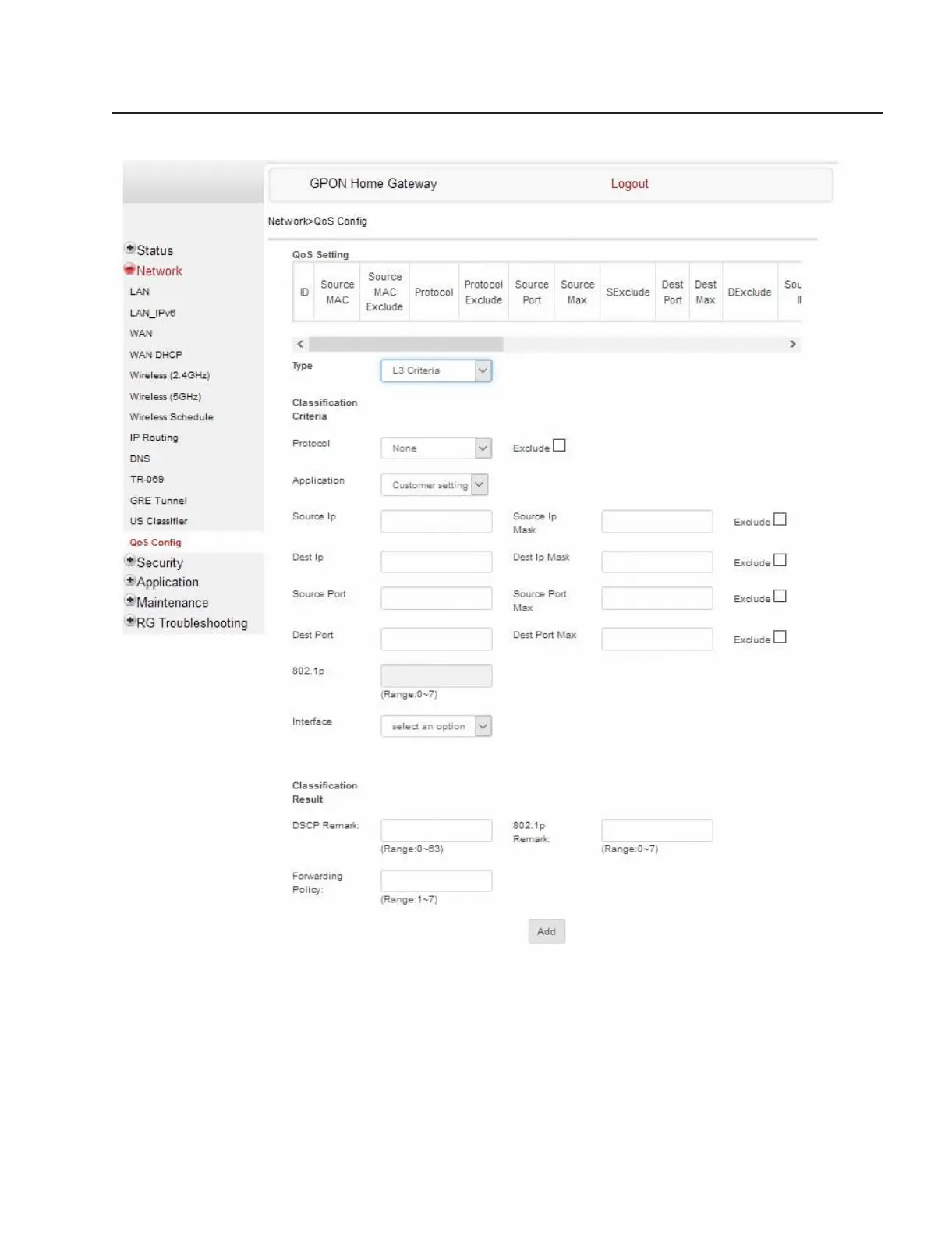 Figure 7-28 QoS Config page (L3 packet sizes)