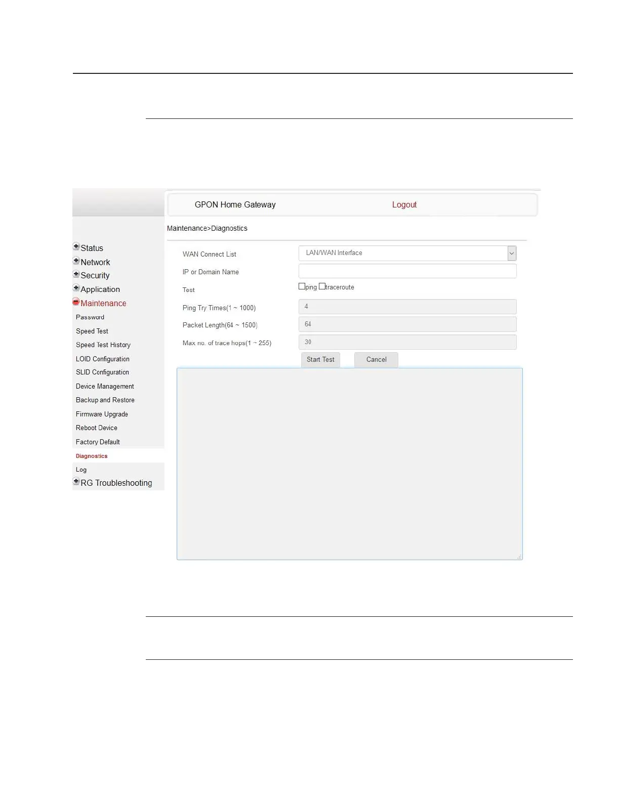 Click Maintenance→Diagnostics from the left pane in the GPON Home Gateway page. The