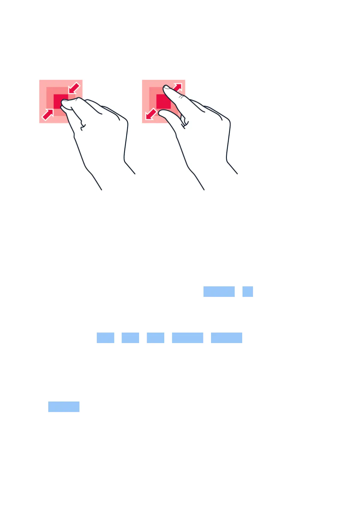 将两根手指放在所需内容 (如地图、照片或⽹页) 上,然后向外张开或向内并拢滑动两指。