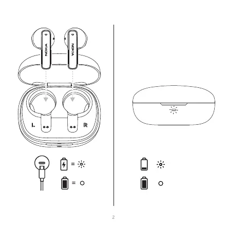 LED-lyset på øreproppene vil blinke blått og rødt.