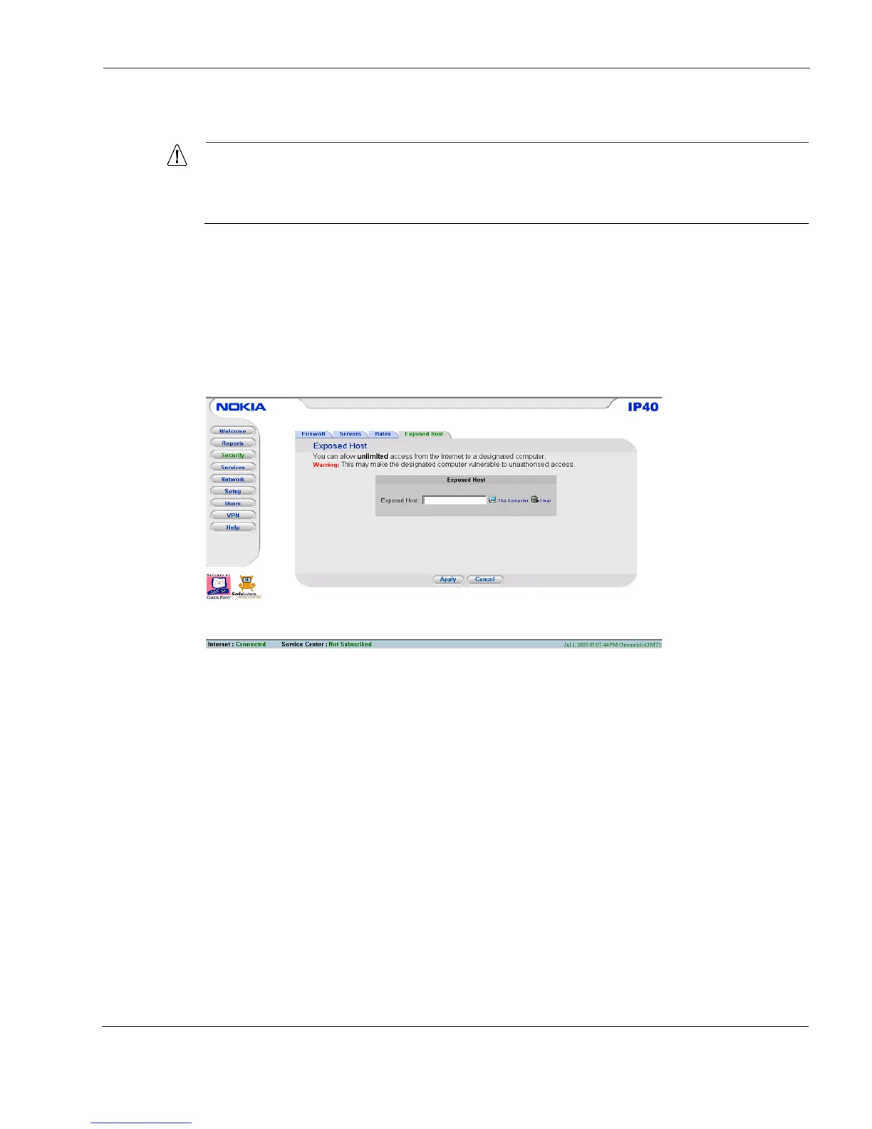 attacks. Nokia recommends that you not define an exposed host unless you are fully
