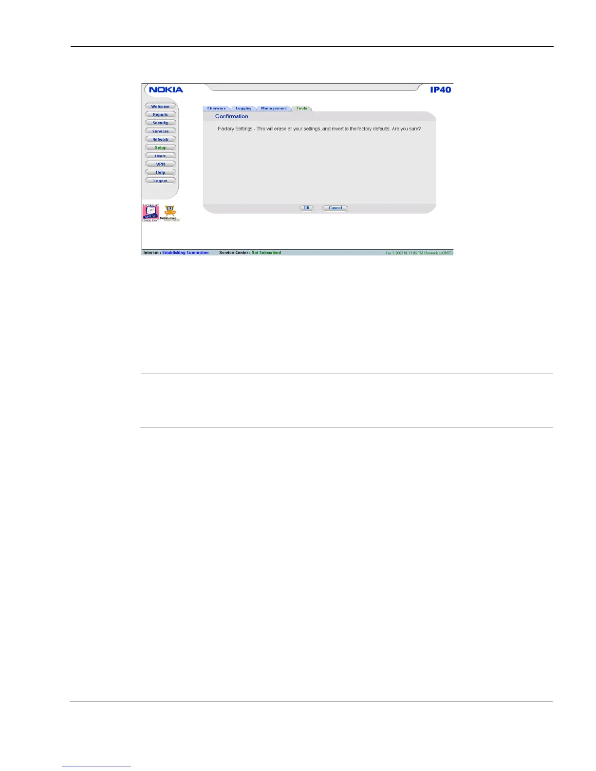 Resetting Nokia IP40 Security Platform to Factory Defaults
