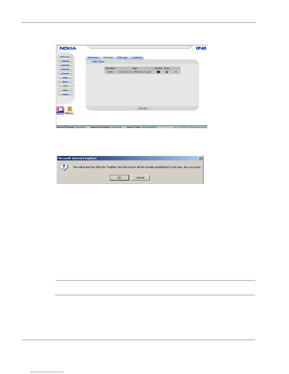 You can log on to a VPN site either through the Nokia IP40 GUI or the my.vpn page. When you