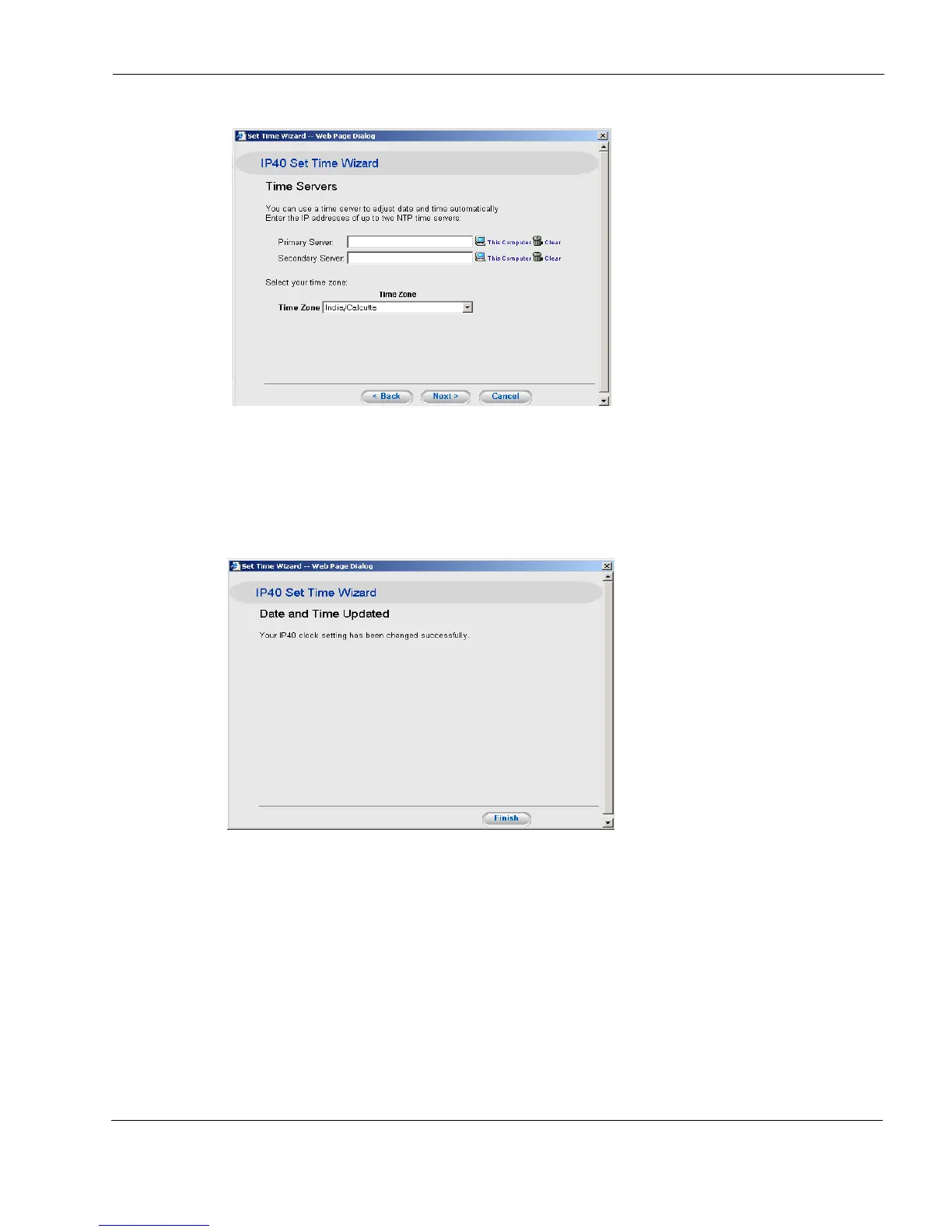 The IP40 Setup Wizard dialog box appears when you exit the Set Time wizard.