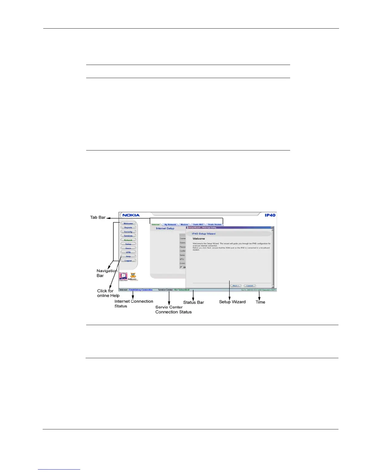 This section provides details about Nokia IP40 v1.1 graphical user interface (GUI).