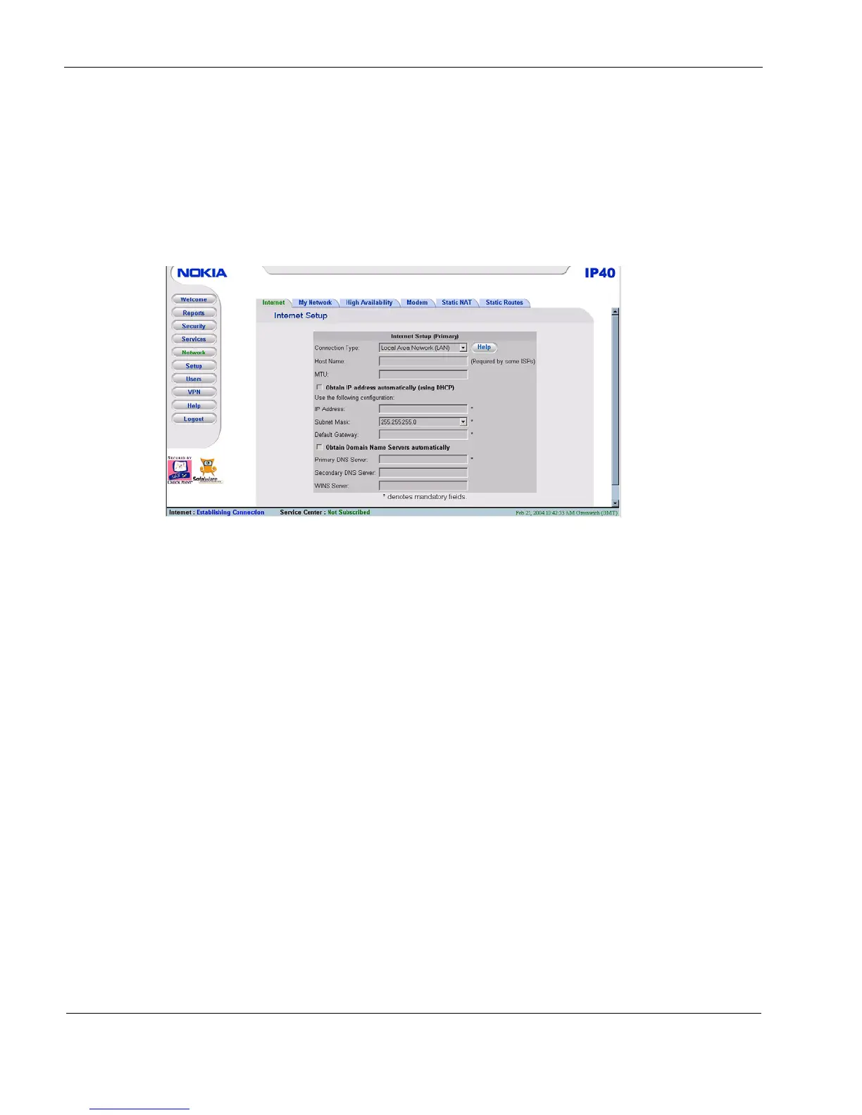 5 Connecting to the Internet with Nokia IP40 Security Platform