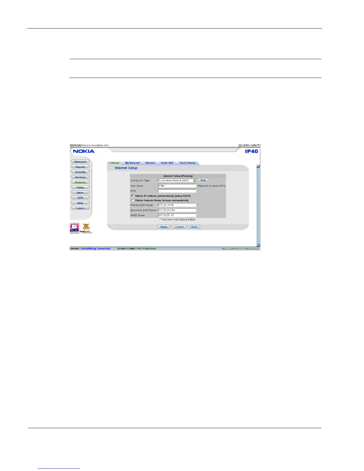 5 Connecting to the Internet with Nokia IP40 Security Platform