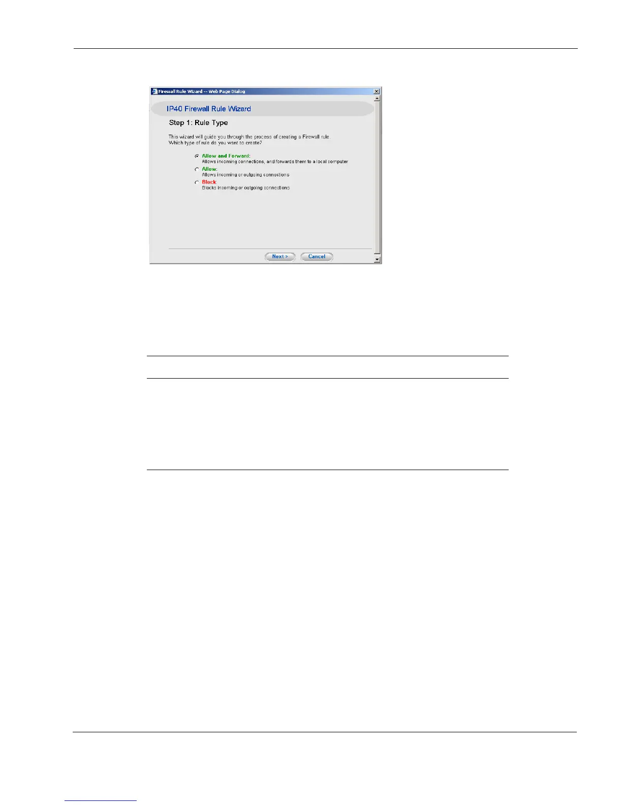 Depending on the button you select, the Allow and Forward rule, or the Allow Rules, or the