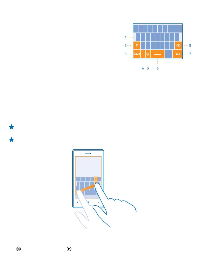 key, slide your finger to the character, and lift your finger.