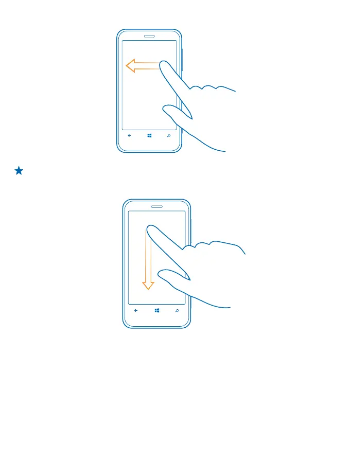 Example: Swipe left or right between the start screen and the apps menu, or between different