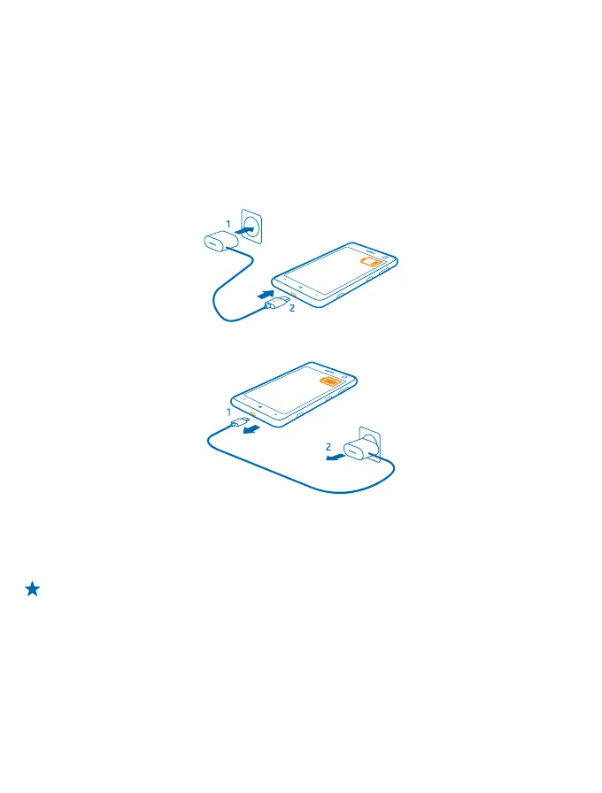 2. When the battery is full, disconnect the charger from the phone, then from the wall outlet.