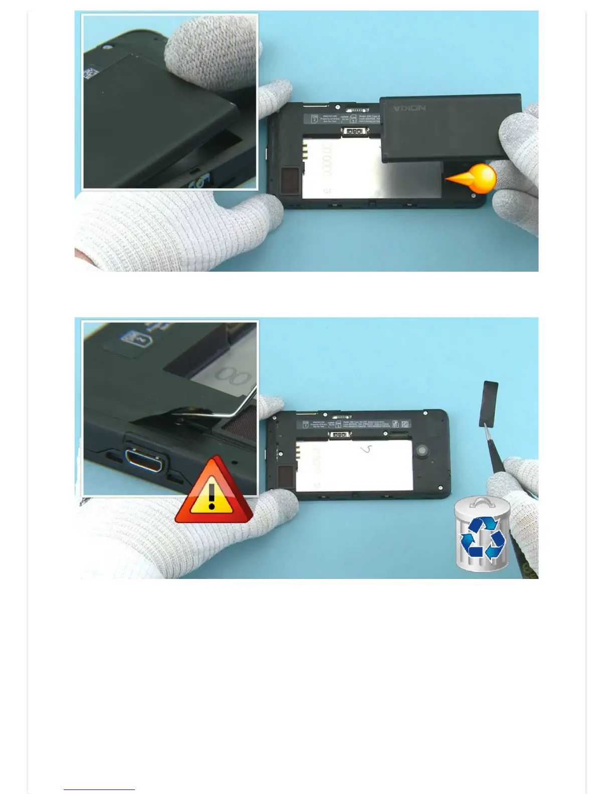 5) If there is battery inserted, remove it by using the shown finger notch.