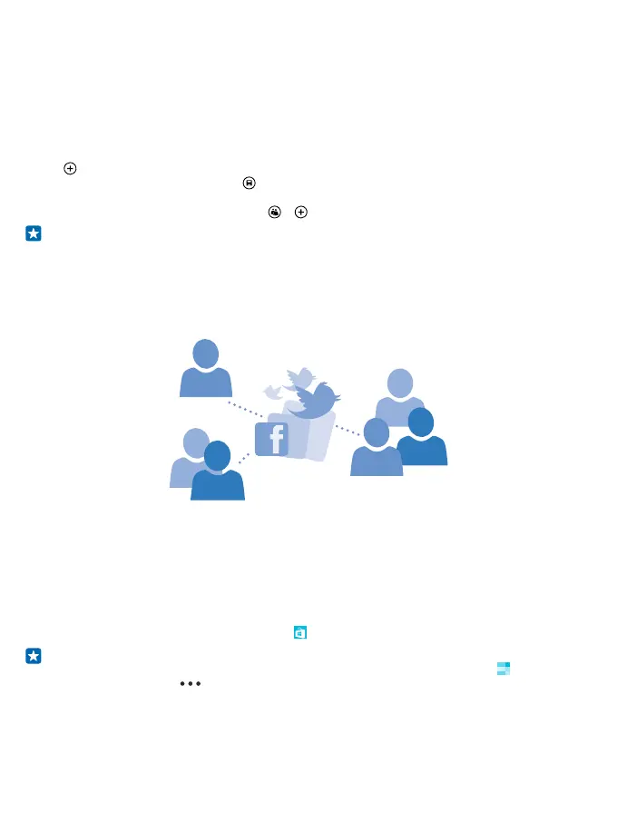 On the start screen, swipe left, tap the social networking app you want to sign in to, such as Facebook,