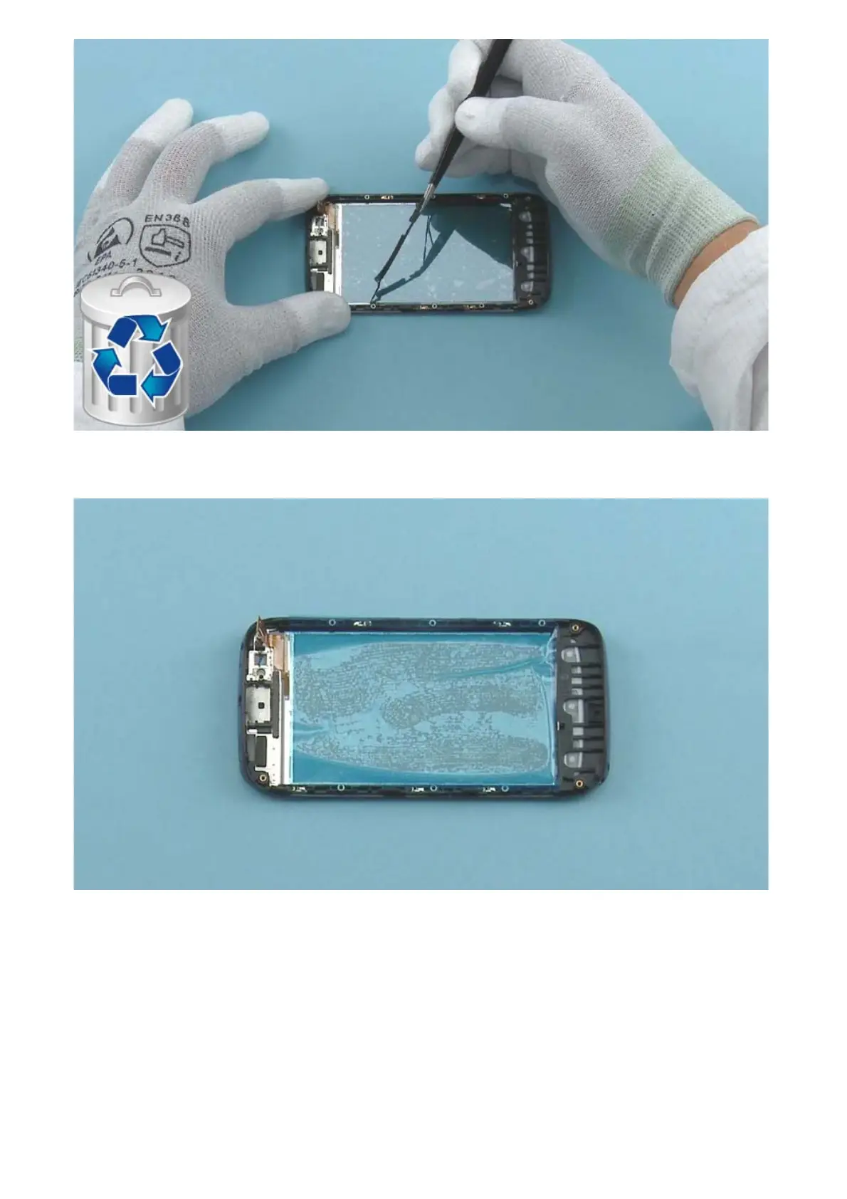 Remove the DISPLAY GASKET with tweezers. Do not use it again. Discard it.