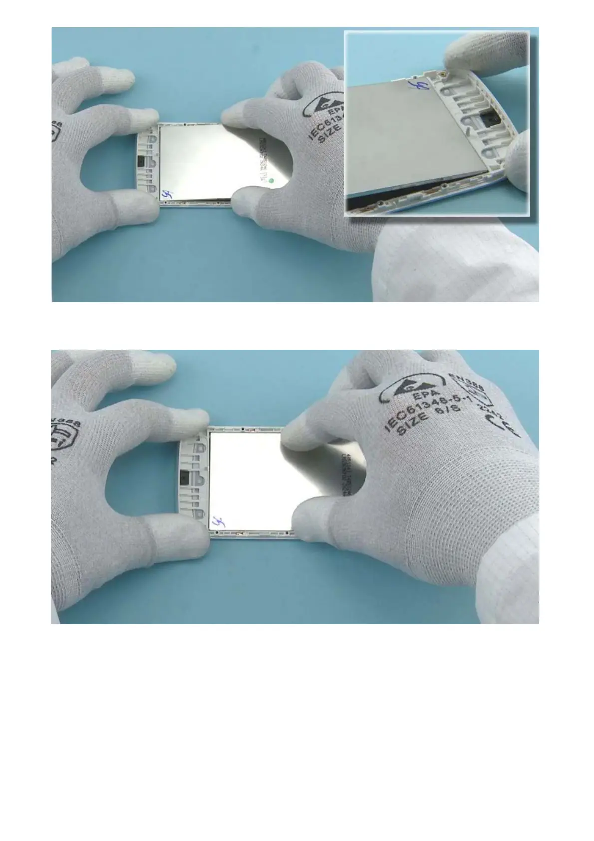 Lower down the top end of the DISPLAY and press the DISPLAY gently to activate the adhesive.