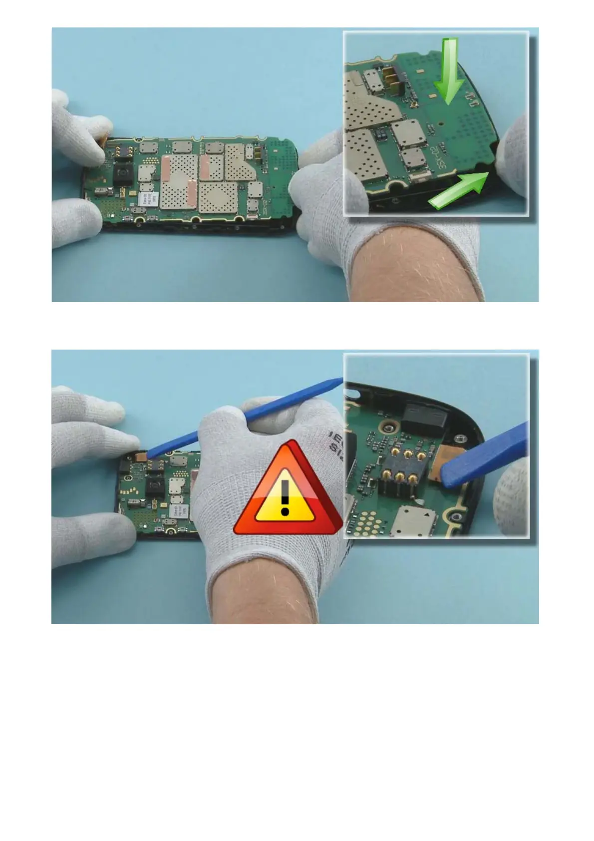 Push the bottom end of the A-COVER to direction shown and gently push the ENGINE BOARD to its place.