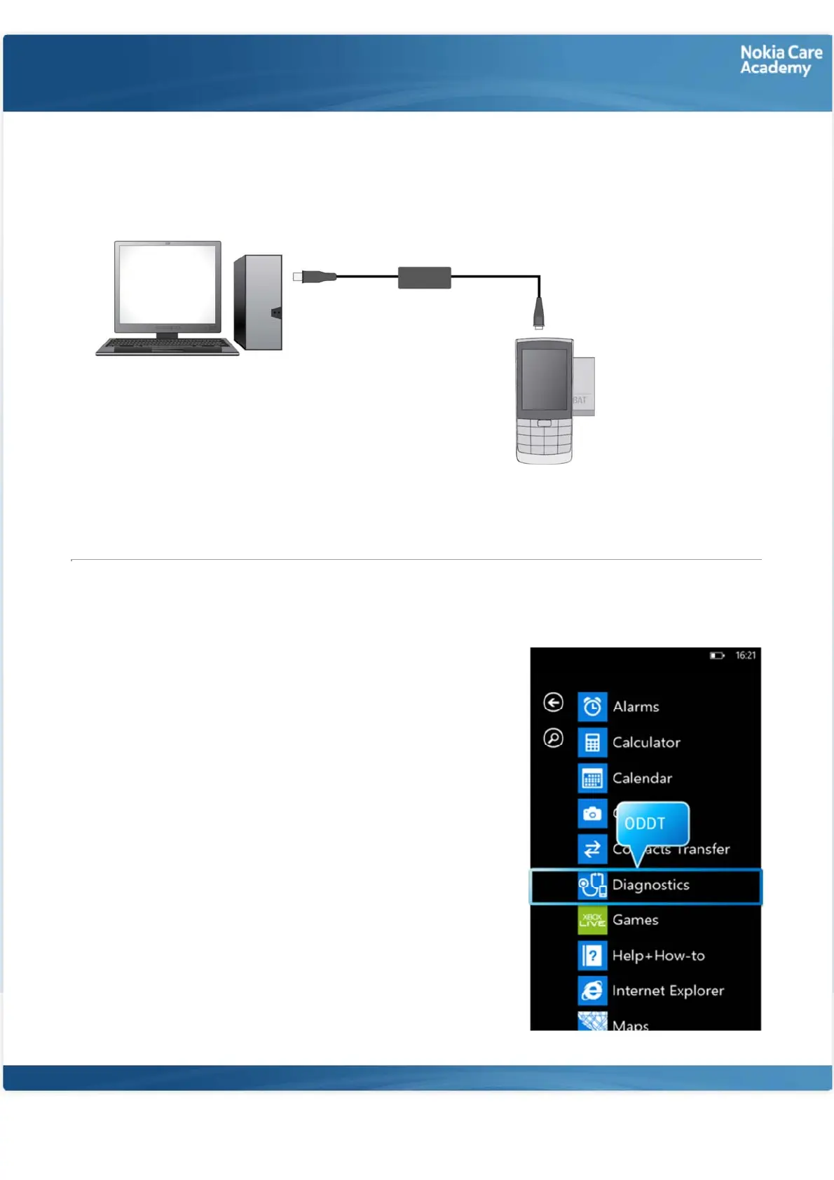 troubleshooting at Nokia Care Points. The ODDT is not visible on