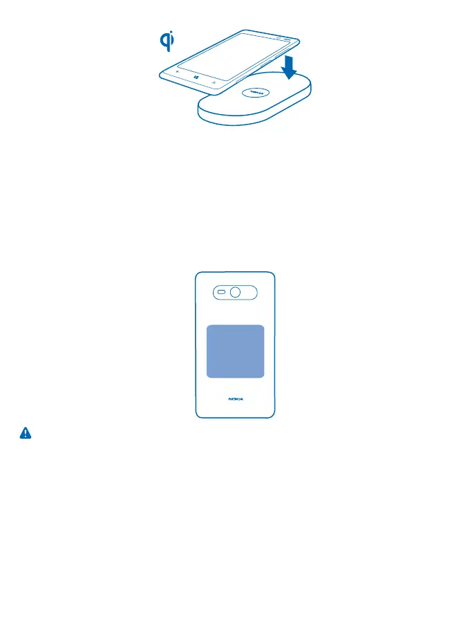 Warning: Make sure there’s nothing between the charger and the device. Do not attach any