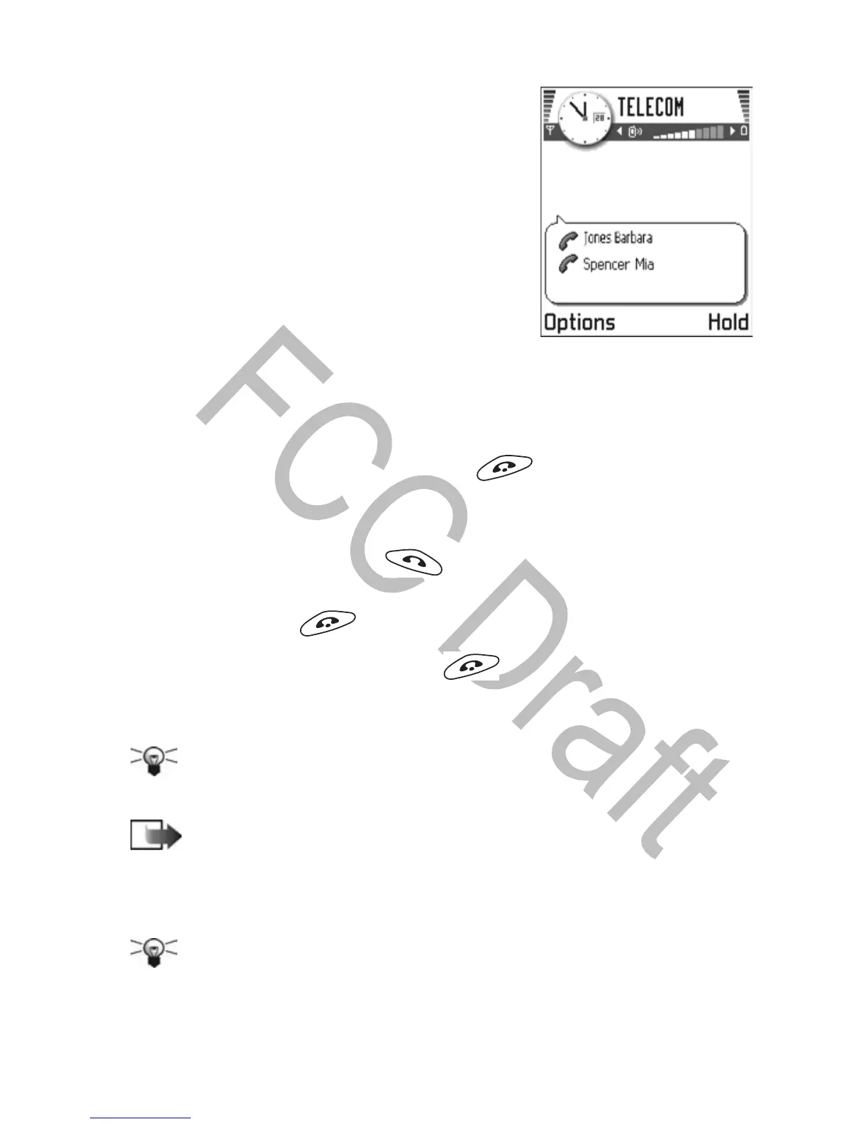 If you do not want to answer a call, press . The caller will hear a “line busy”