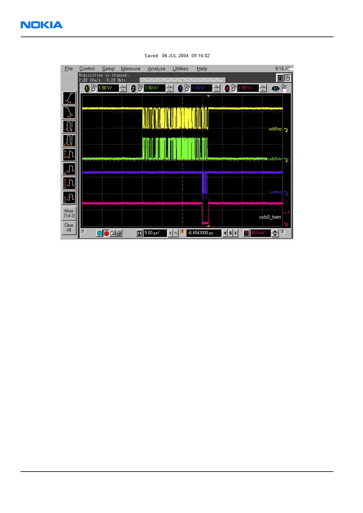 Figure 47 USB 2: Take single triggered measurement on the rising edge of the Helen usb0_txen (J4813) line.