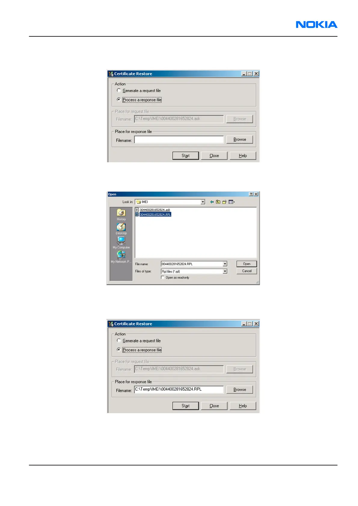 iv From the Tools menu, choose Certificate Restore and select Process a response file in the