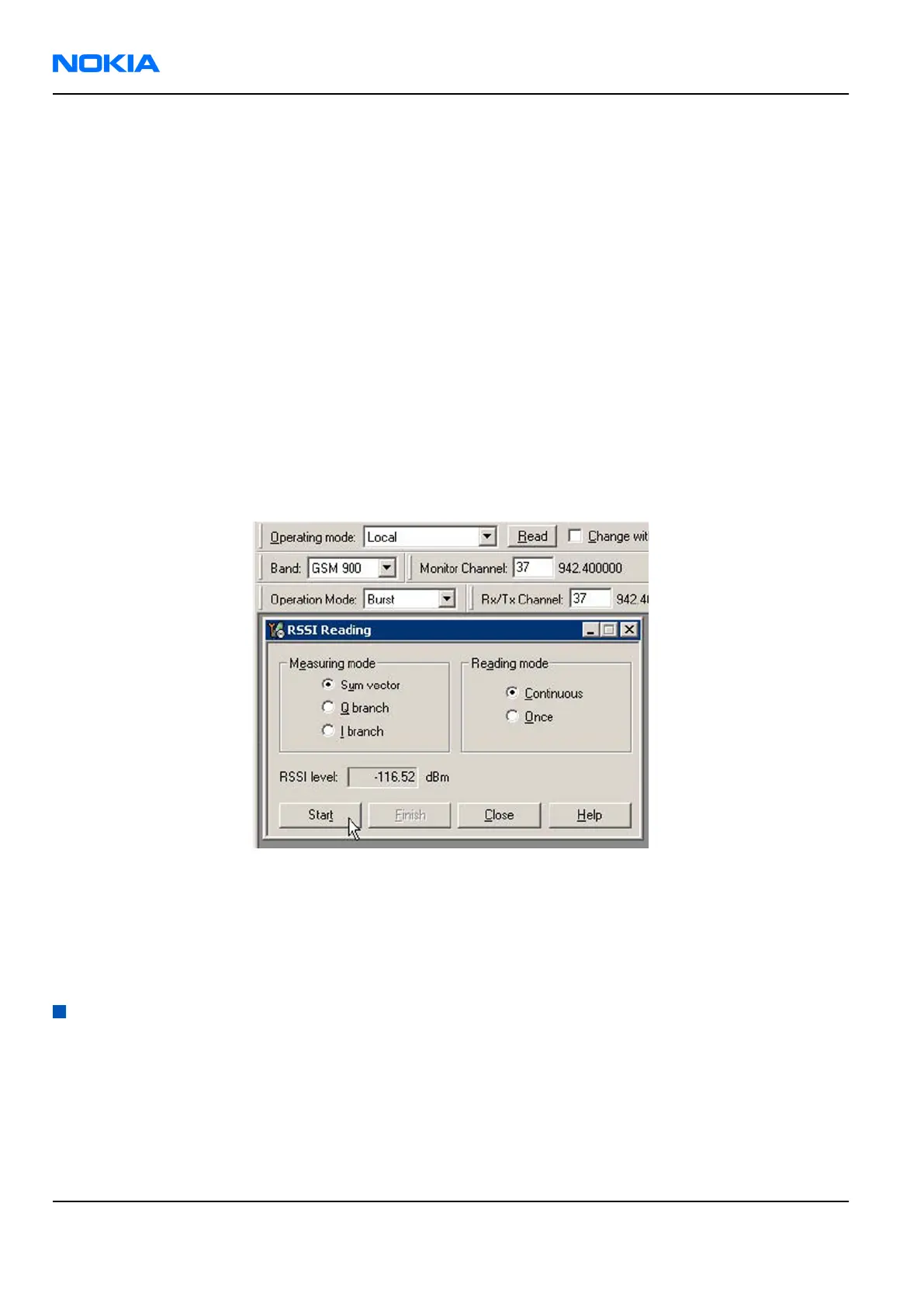 RSSI reading values of the selected band and channel are displayed. The RSSI level must be the same value