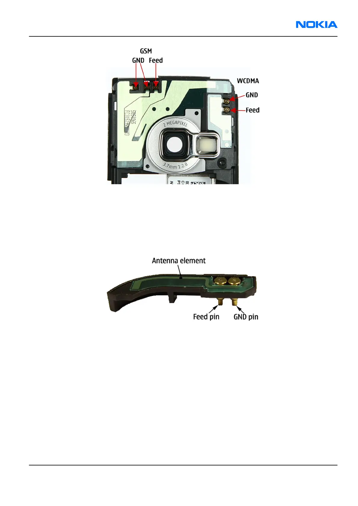 Figure 63 Feed and GND spots of the main antenna