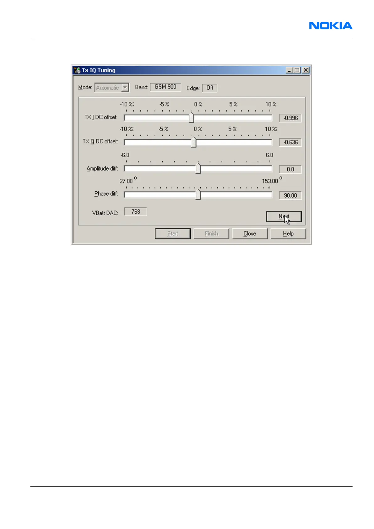 10. When all bands have been tuned, click Finish, and Close to end the tuning procedure.