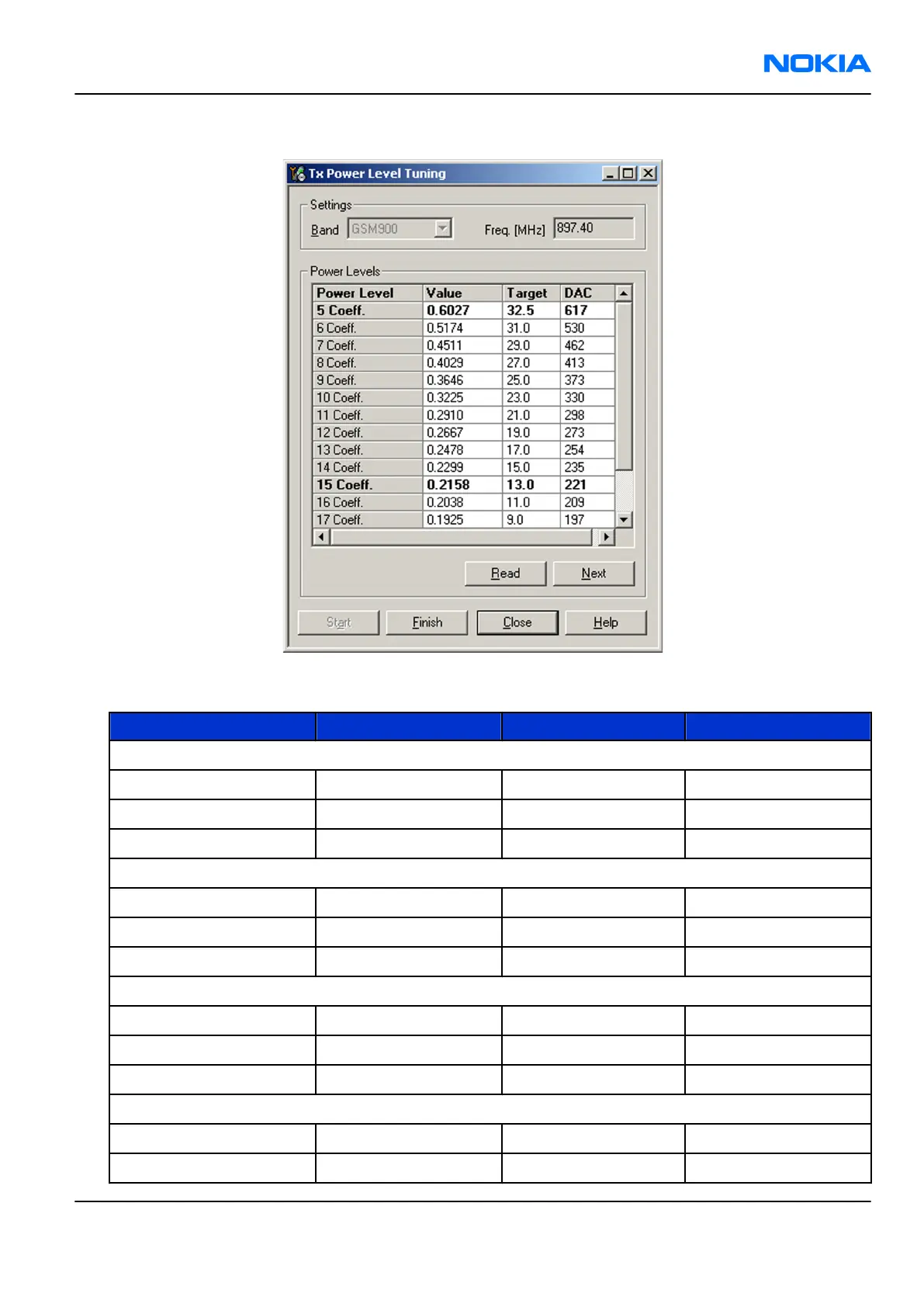 7. Adjust power levels 5, 15 and 19 to correspond the
