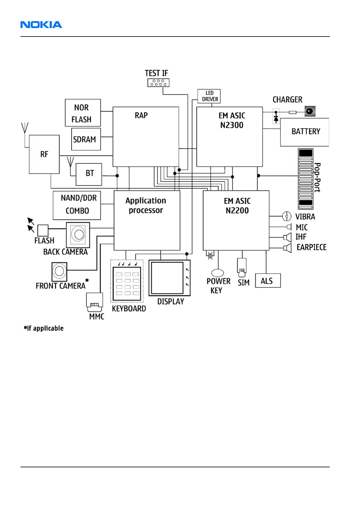 The application section includes an application processor ASIC with DDR/NAND combo memory as the core.