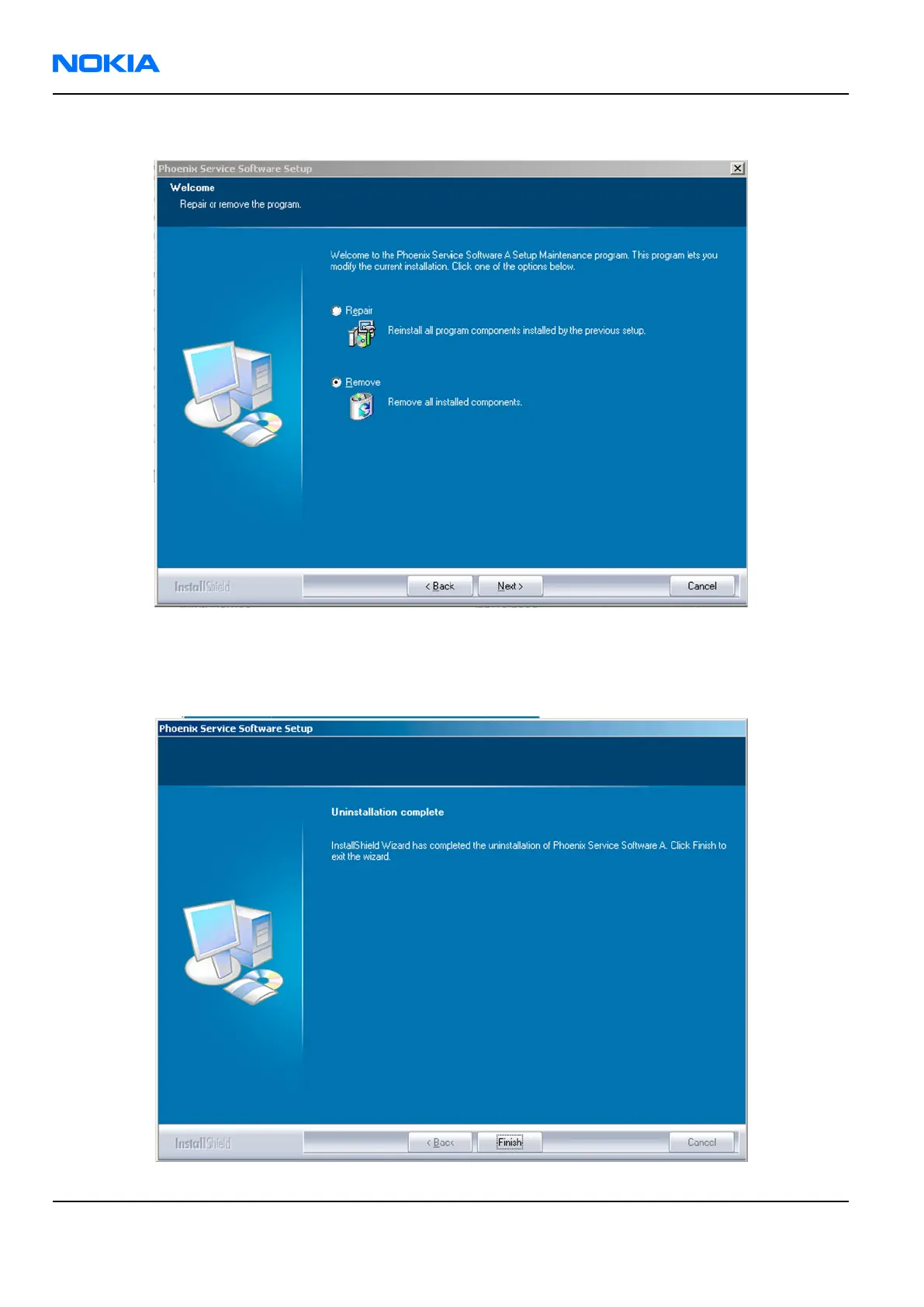 , choose Phoenix Service Software→Change/Remove→Remove .
