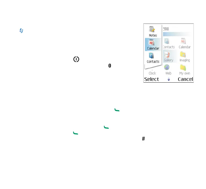 • To switch between General and Silent profiles, press and hold . If you have two phone