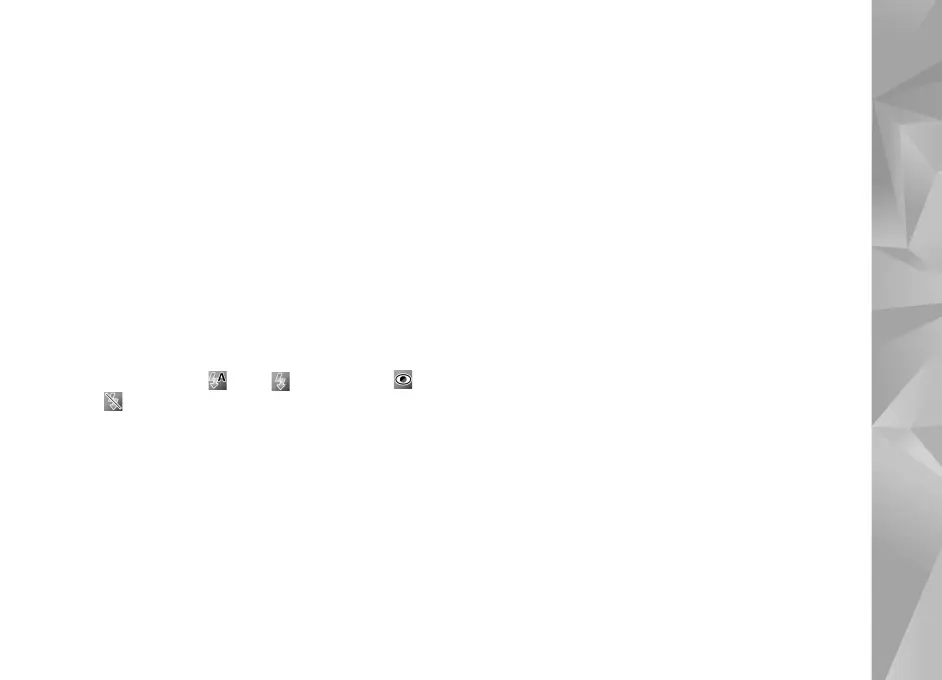 Flash—Select the desired flash mode. See ‘Flash’, p. 33.