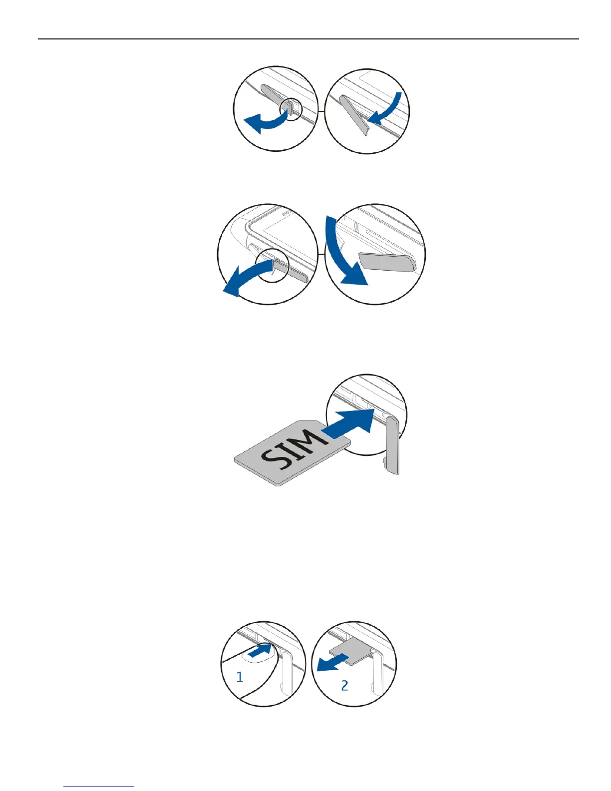 4 Insert the SIM card. Push the card in, until you hear a click.