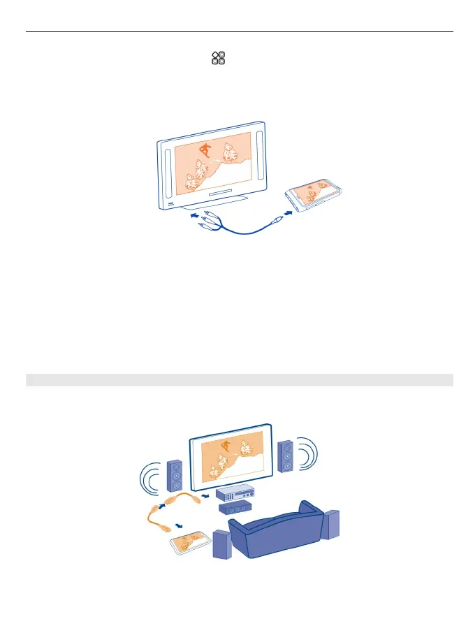 1 Connect a Nokia Video Connectivity Cable to the video input of a compatible TV. The