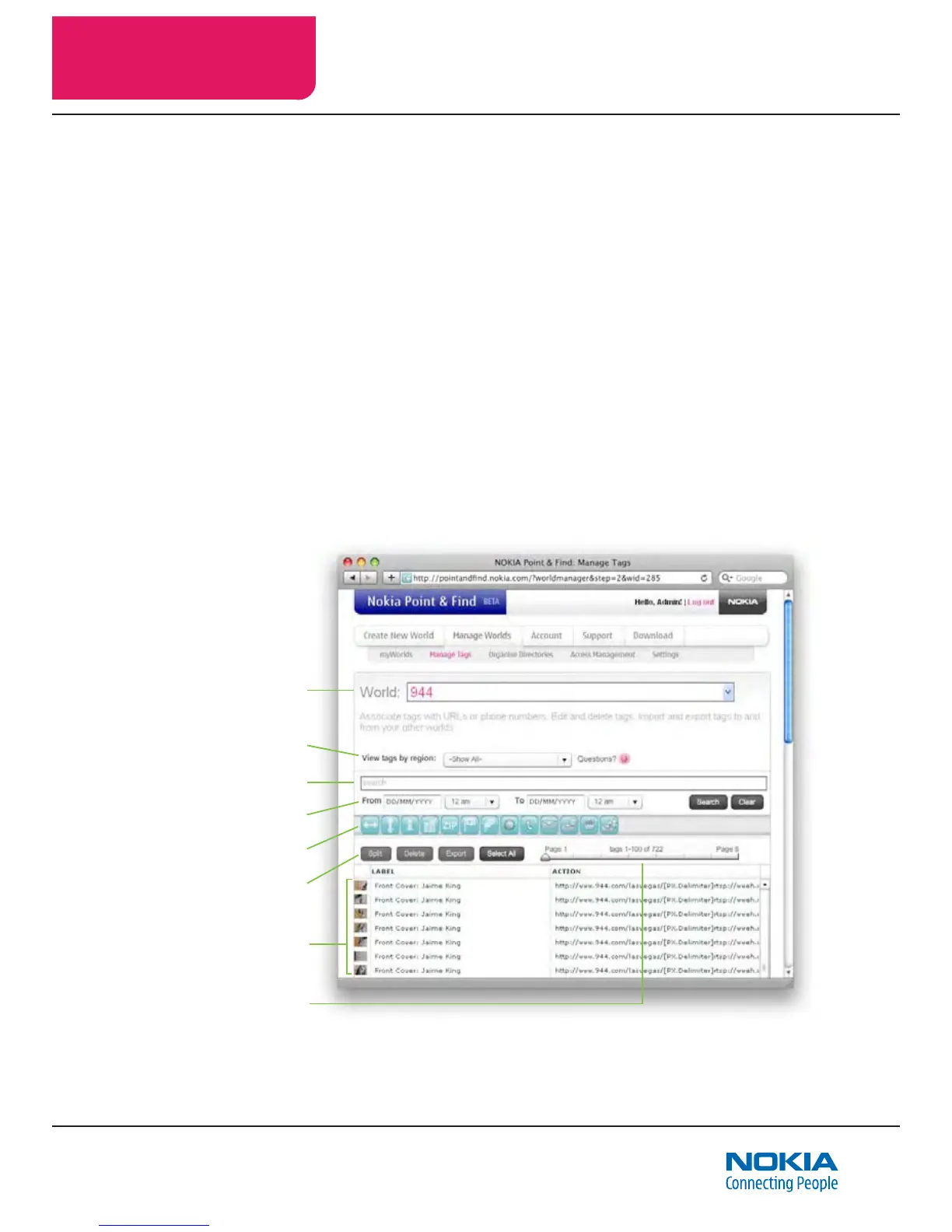Manage Tags page