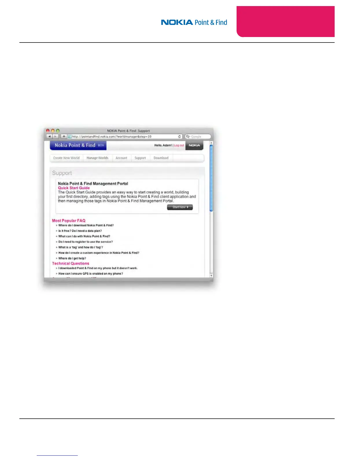 questions (FAQs), a QuickStart Guide, and an option to contact Nokia