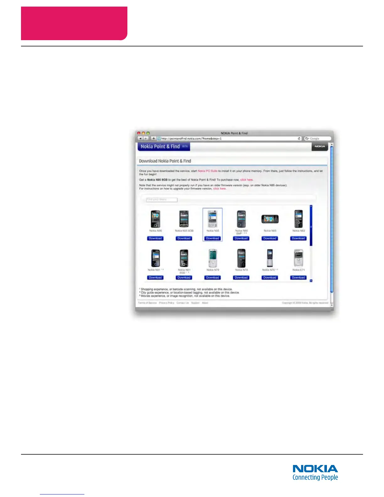 latest versions of the Nokia Point and Find client application, along