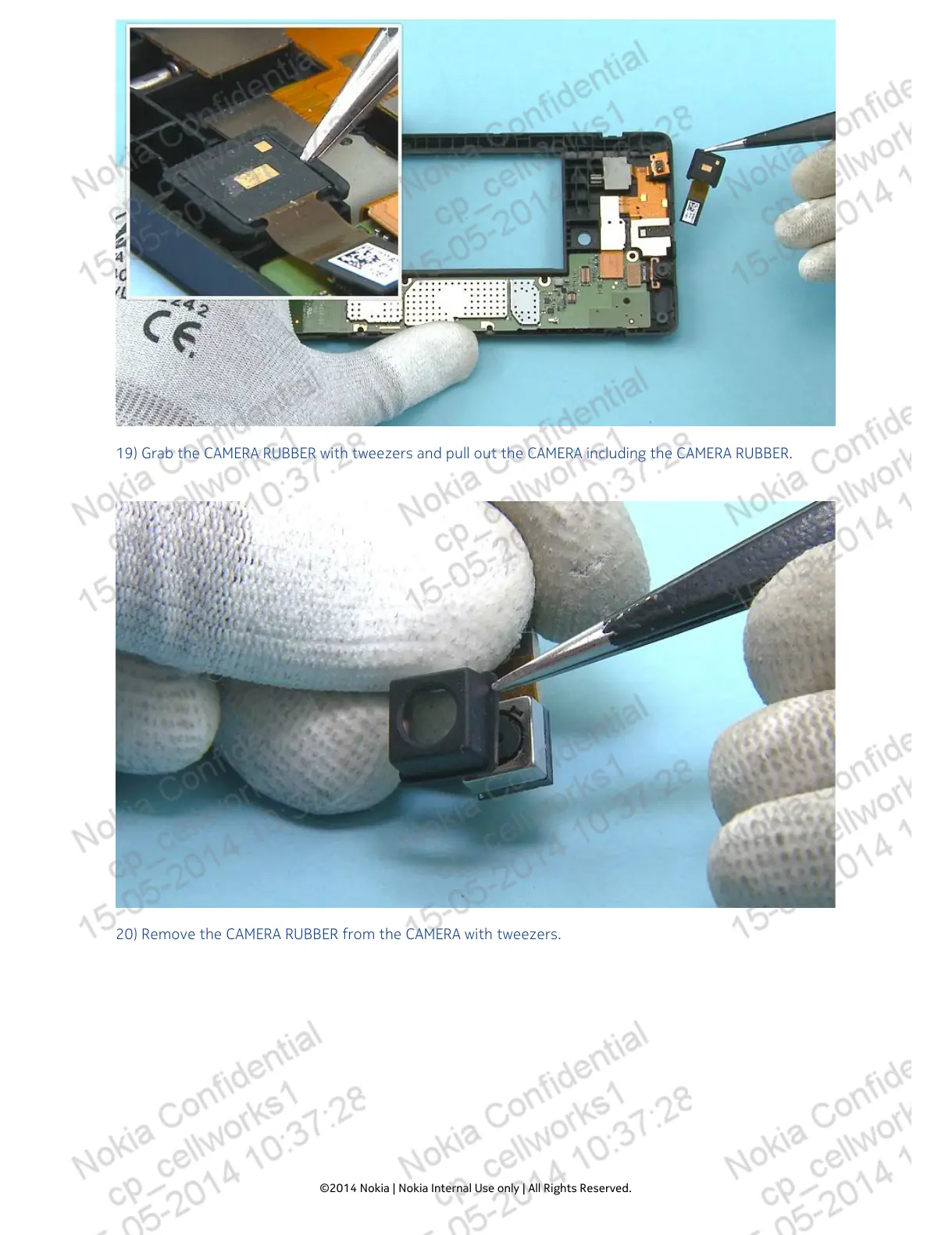19) Grab the CAMERA RUBBER with tweezers and pull out the CAMERA including the CAMERA RUBBER.