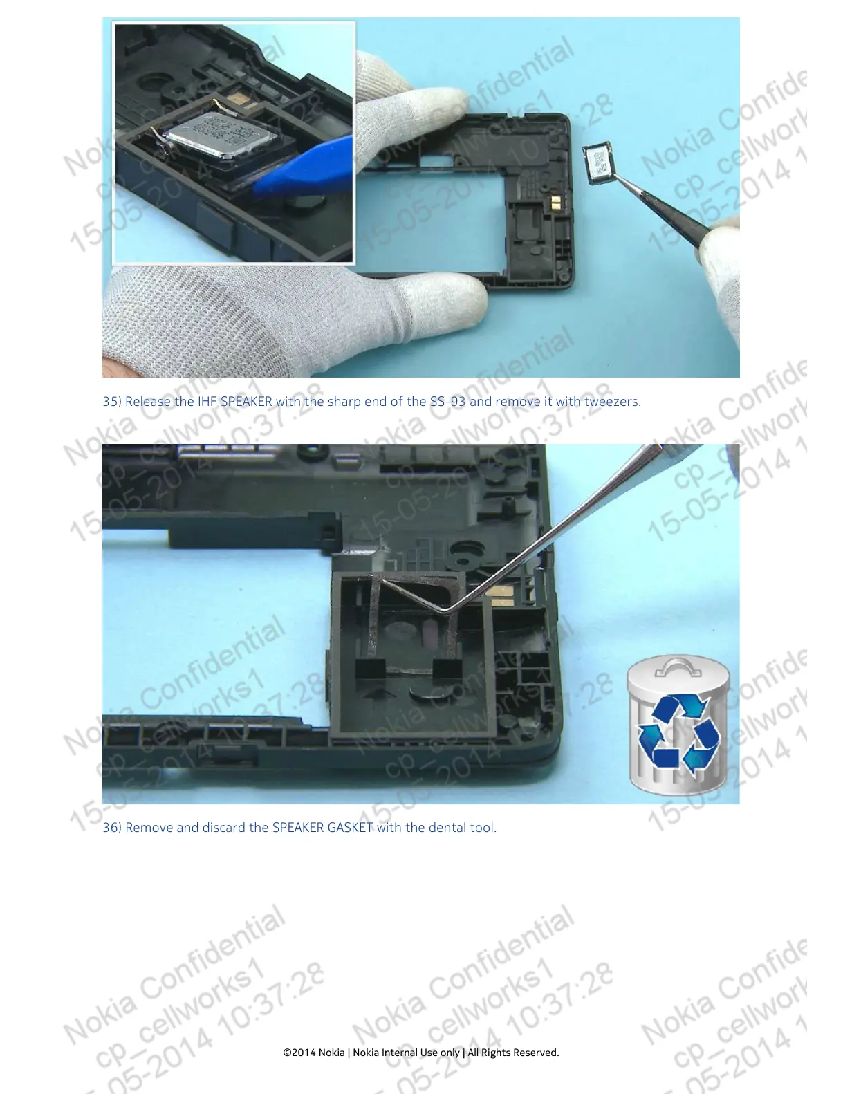36) Remove and discard the SPEAKER GASKET with the dental tool.