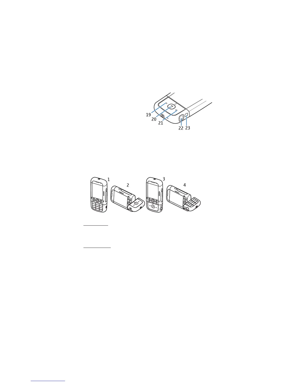 Your phone has five functional modes: phone mode (1), camera mode (2), music