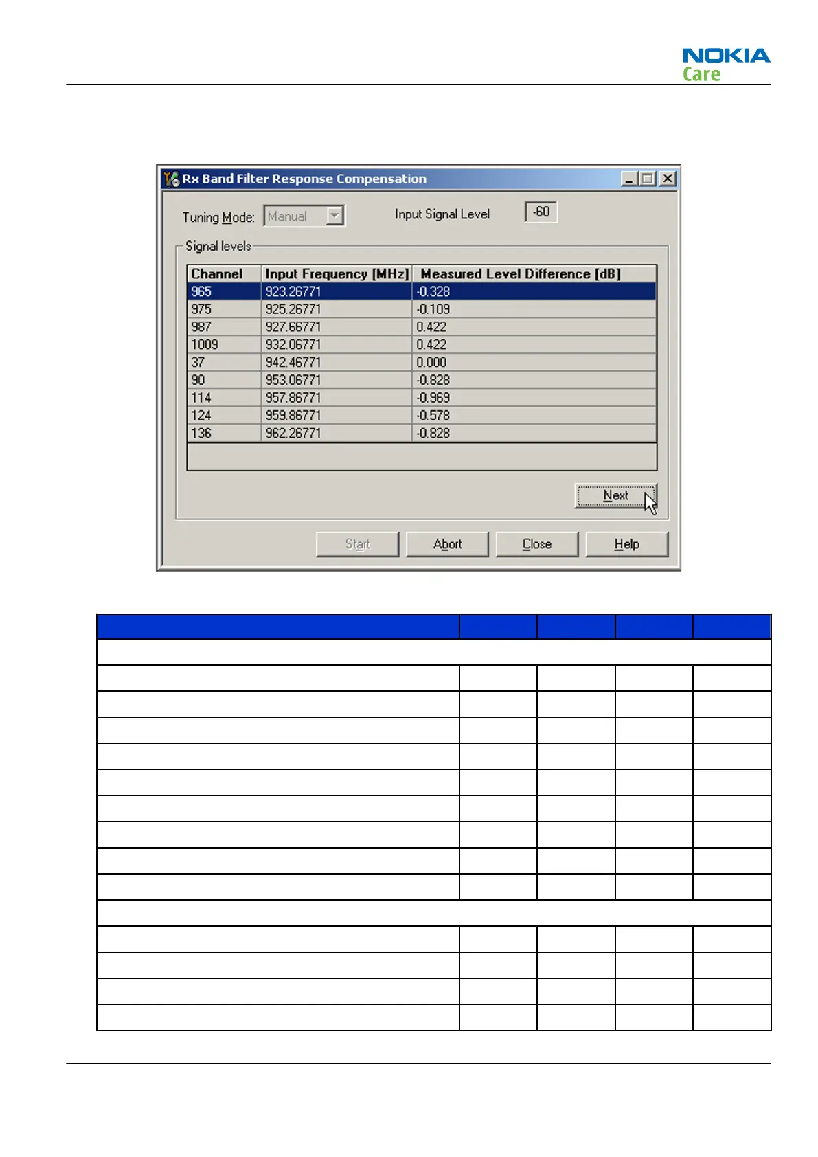 10. Go through all 9 frequencies. The following table will be shown: