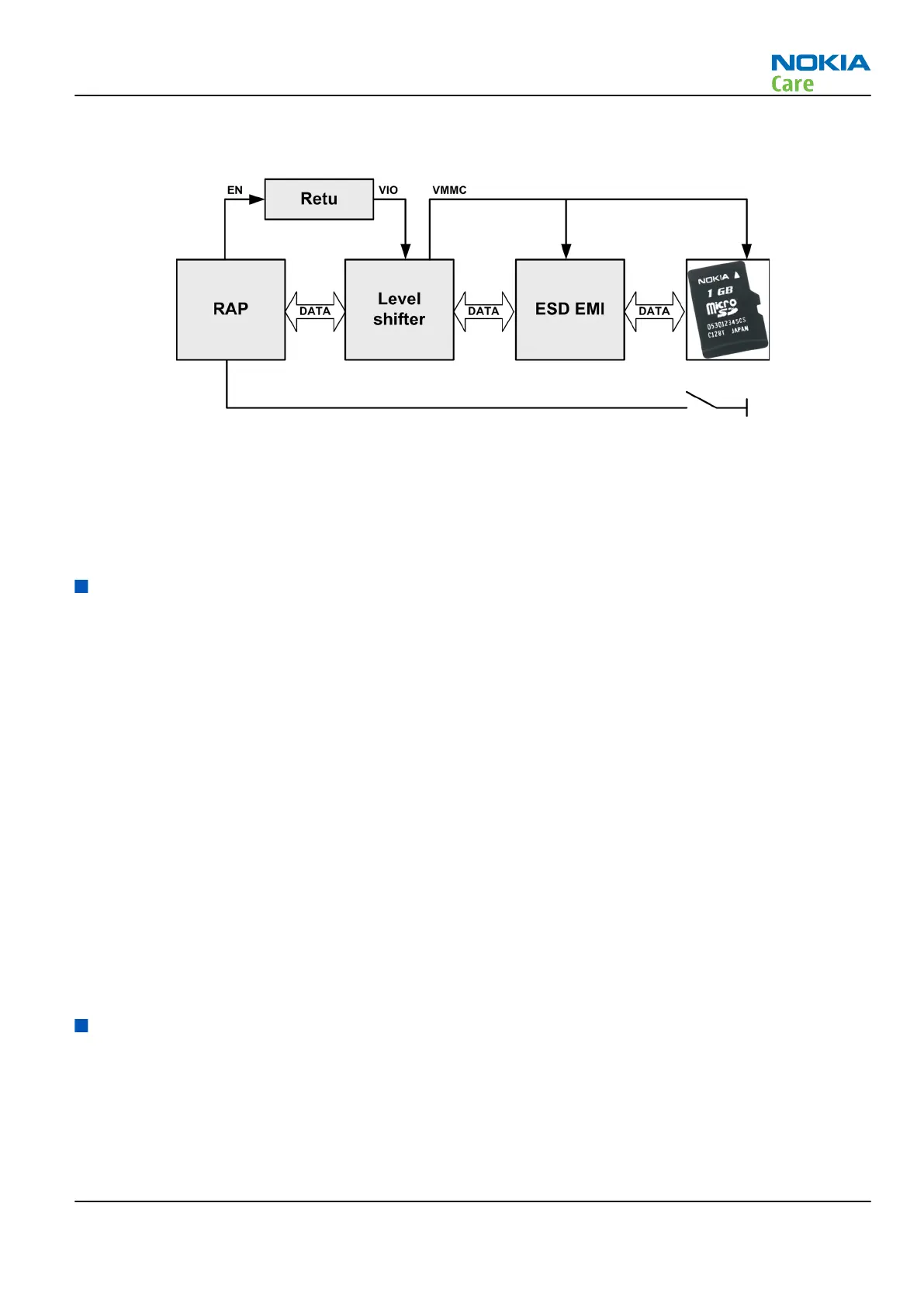 The µSD card is connected to the engine by an external level shifter and ESD protection filter. Supplied