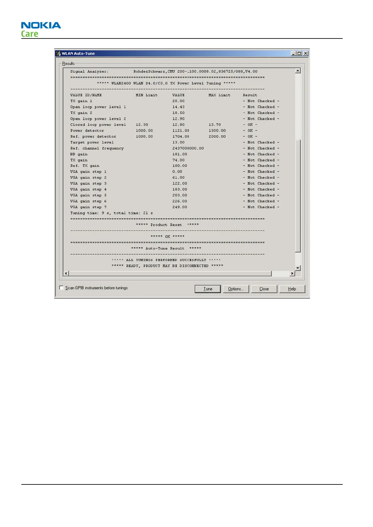 Figure 27 WLAN auto tune results