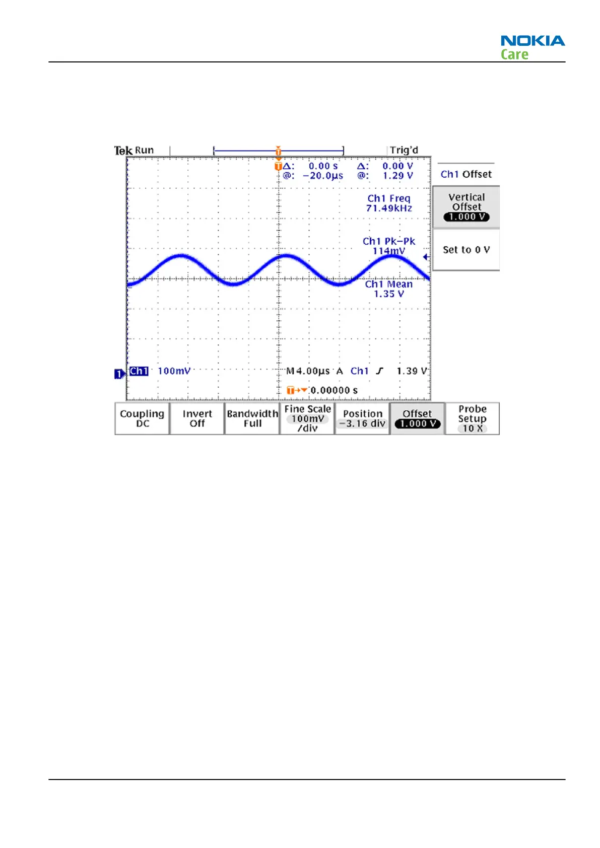 Signal amplitude 114mVp-p. DC offset 1.0V.
