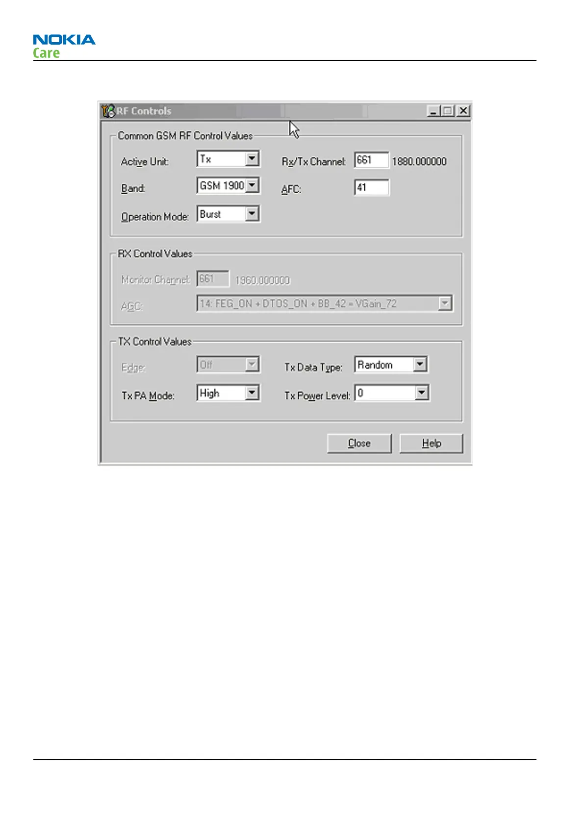 Figure 76 GSM 1900 RF controls window