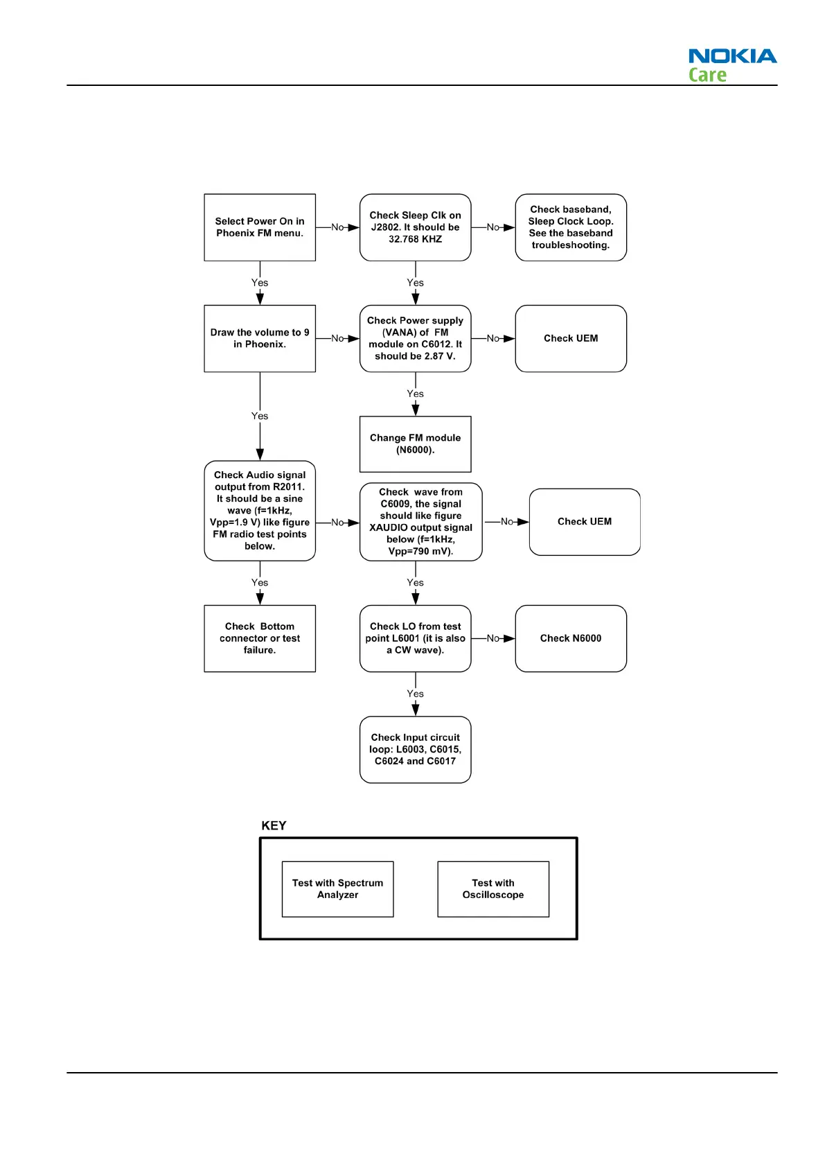 Troubleshooting diagram for FM radio