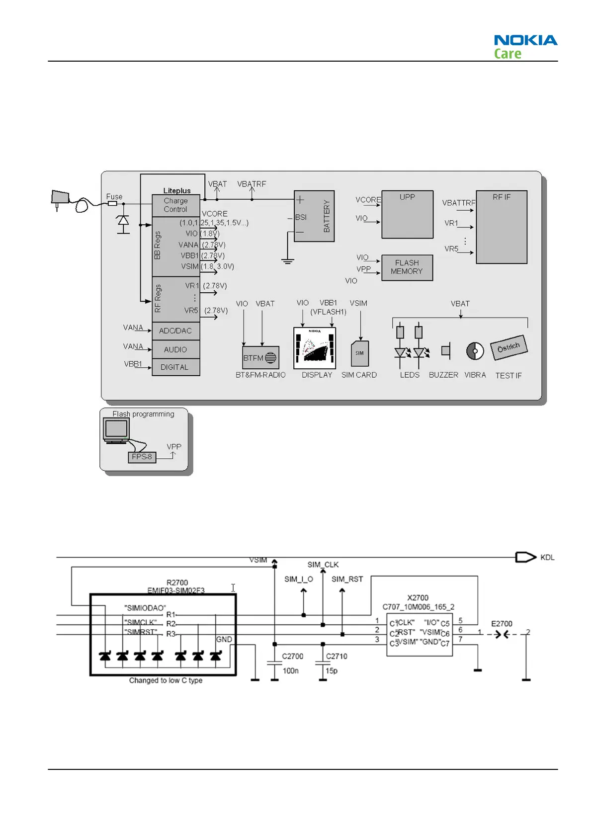 The Audio circuit: Earpiece, IHF, internal microphone and external speaker are filtered with discrete