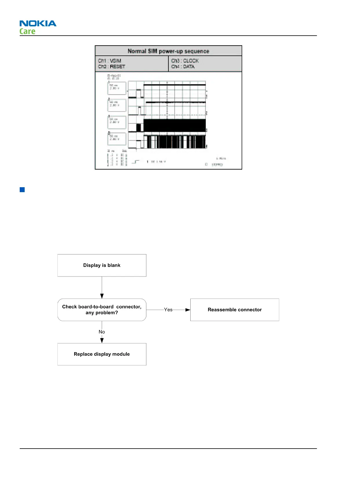 The display does not show any information at all. For display blank, refer to troubleshooting flow below.